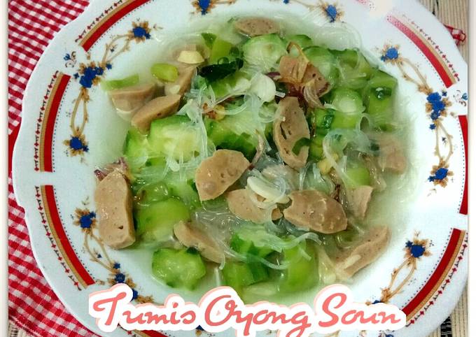 Sayur oyong bening soun telah siap dihidangkan. Lalu masukkan oyong dan tunggu hingga matang. Masak hingga jagung dan oyong setengah matang dan air mulai menggolak. Cara mudah membuat sup oyongbahannya adalah :2 buah oyong muda2 buah worteldaun bawang seledribawang goreng secukupnya1 siung bawang merah1 siung bawang puti. Foto² soun masak oyong | masukkan wortel, gambas, bakso ayam, seledri, gula, garam, dan merica.