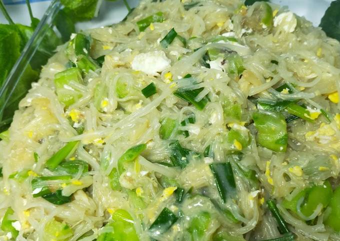 Resep tumis oyong soun praktis: Foto² soun masak oyong : Siapkan mangkuk saji yang akan anda gunakan. Masak hingga oyong mulai berubah sedikit transparan. Resep sayur oyong soun bakso adalah salah satu resep sayur yang mudah dan praktis untuk dibuat. Heat one tablespoon of oil in a frying pan. Lihat juga resep gambas ca telur (ala chef) enak lainnya. Tambahkan garam, gula, dan lada. Lalu taburi dengan bawang merah goreng di atasnya. Masukkan oyong dan tauge, tumis sebentar hingga agak layu. Lalu masukan soun yang telah direndam. Pour the beaten eggs and with a spatula, scramble the eggs and cook till they are no longer runny. Sayur bening oyong udang dengan soun siap dinikmati selagi hangat.
